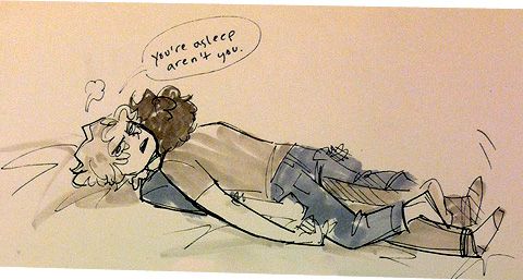 mel mentioned something about super sick/exhausted enjolras denying himself rest in favor of doing work and then R just kind of flopping down on top of him to make him stay put and sleep and um